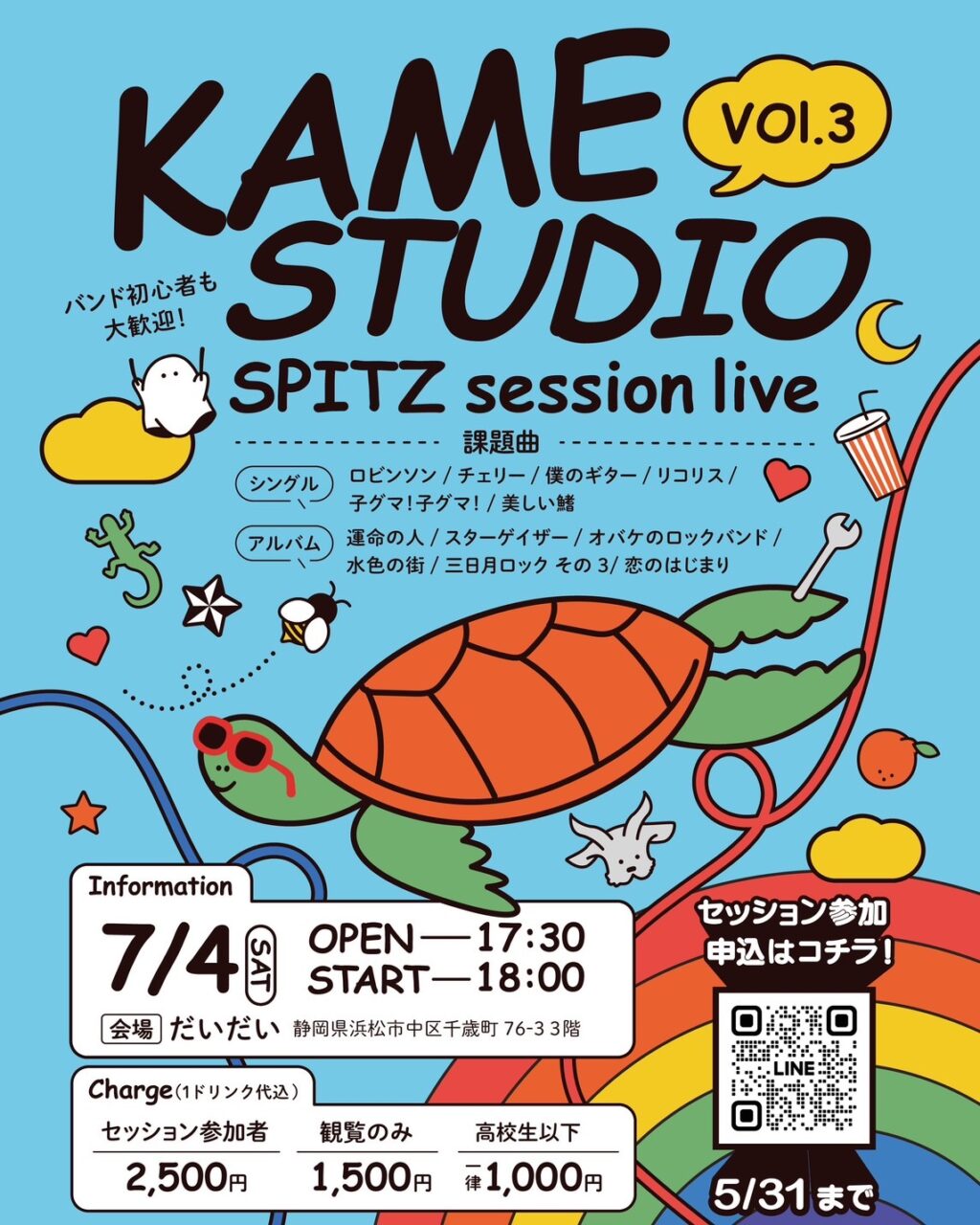 スピッツコピーバンド、カメハウス主催のスピッツセッション企画!